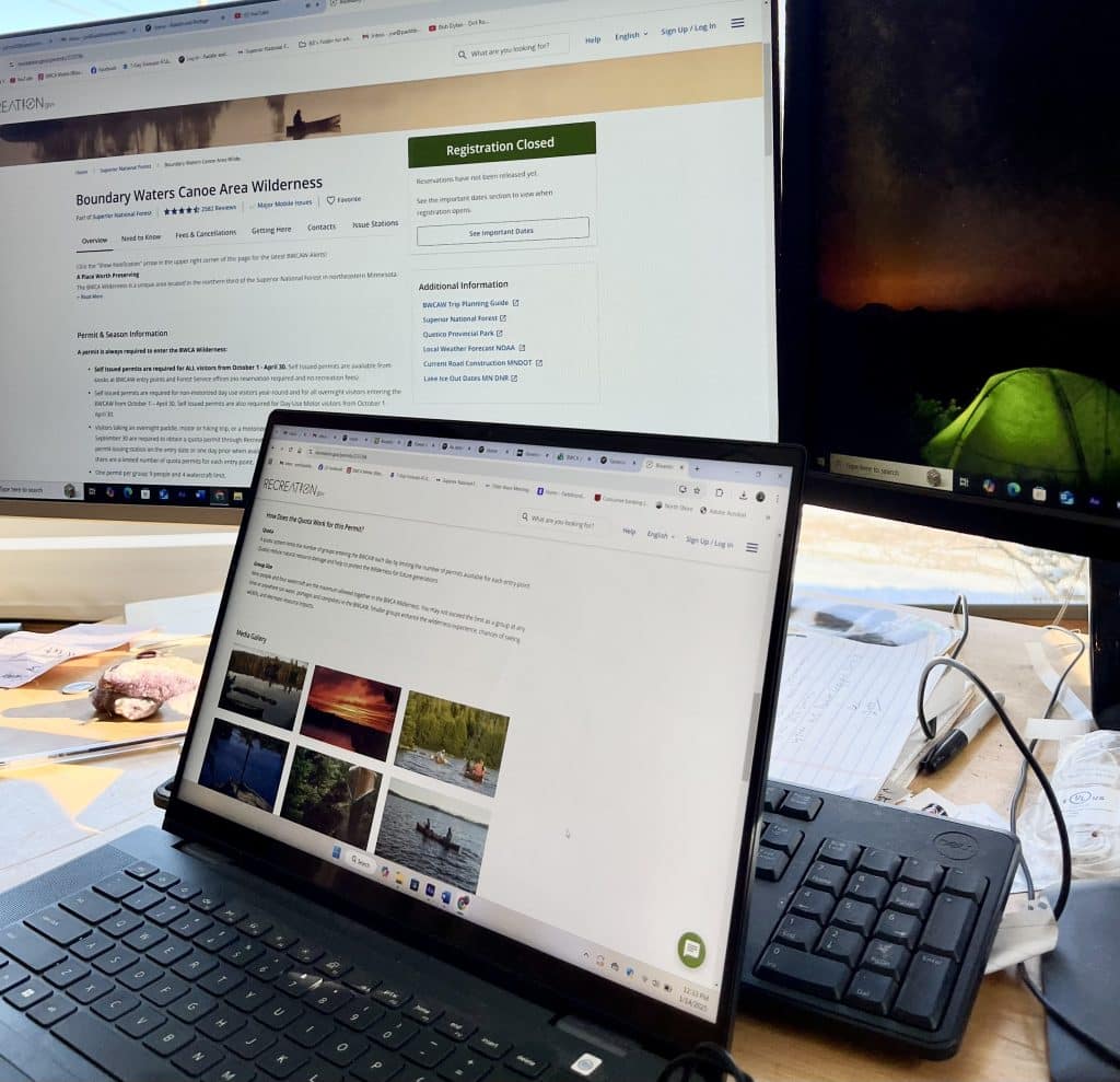 However, making all the permits available on the same day, at the same time, creates a narrative that people need to “book now and figure out the details later,” according to several outfitters Paddle and Portage spoke with earlier this year. This “come and get them now” approach leads to people booking permits that they might not use. For example, if a group of four friends from Minneapolis know they want to take a canoe trip to the Boundary Waters during the paddling season, but they’re not sure what weekend will work, they could legally book a permit on opening day for every weekend in July, with all four members of the group each booking a permit for one weekend throughout the month. Once the group narrows down what weekend will work, they can cancel the other permits they reserved for July.